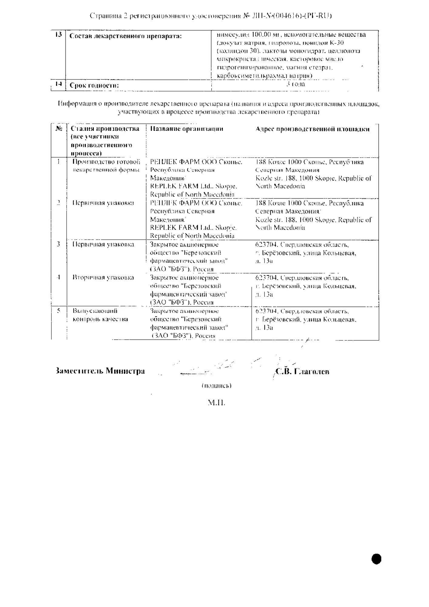активное вещество: