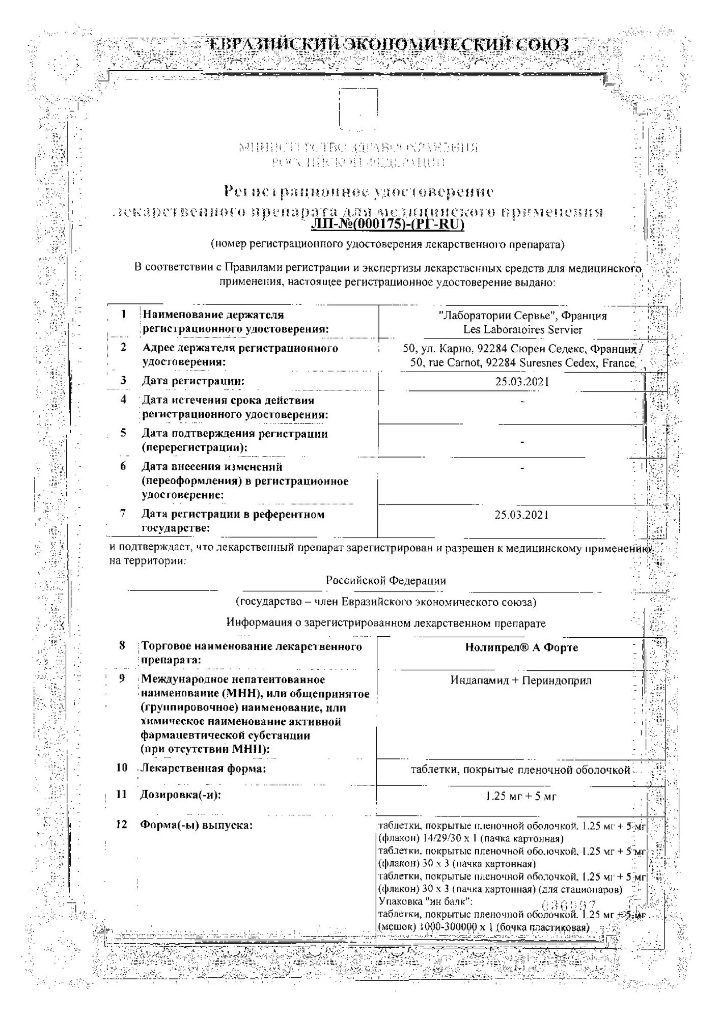 Нолипрел А Форте, таблетки ппо 5мг+1,25мг №30