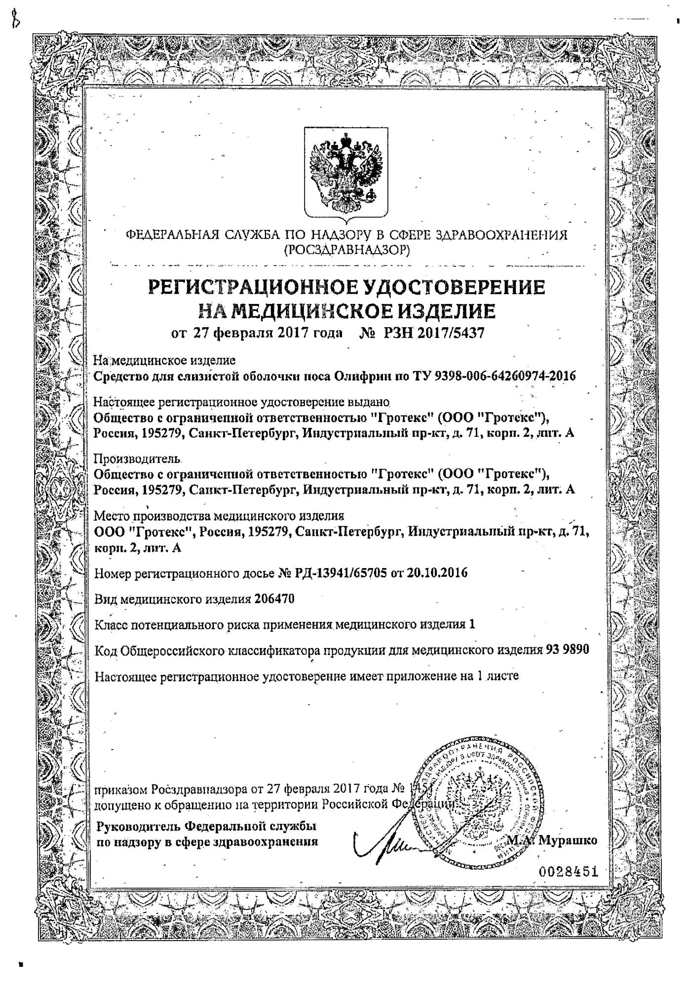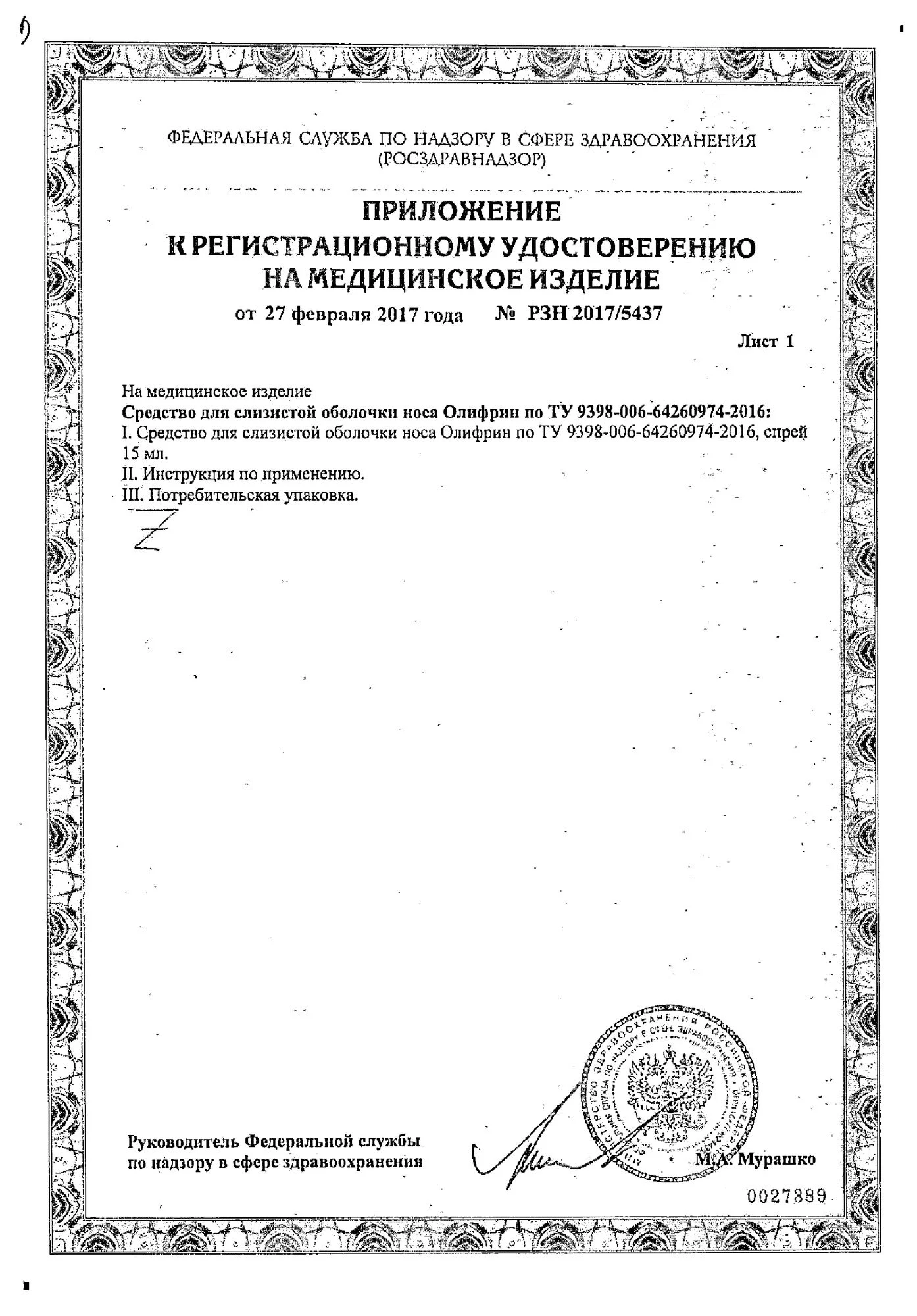 Олифрин средство для слиз обол носа, спрей 15мл увлажн