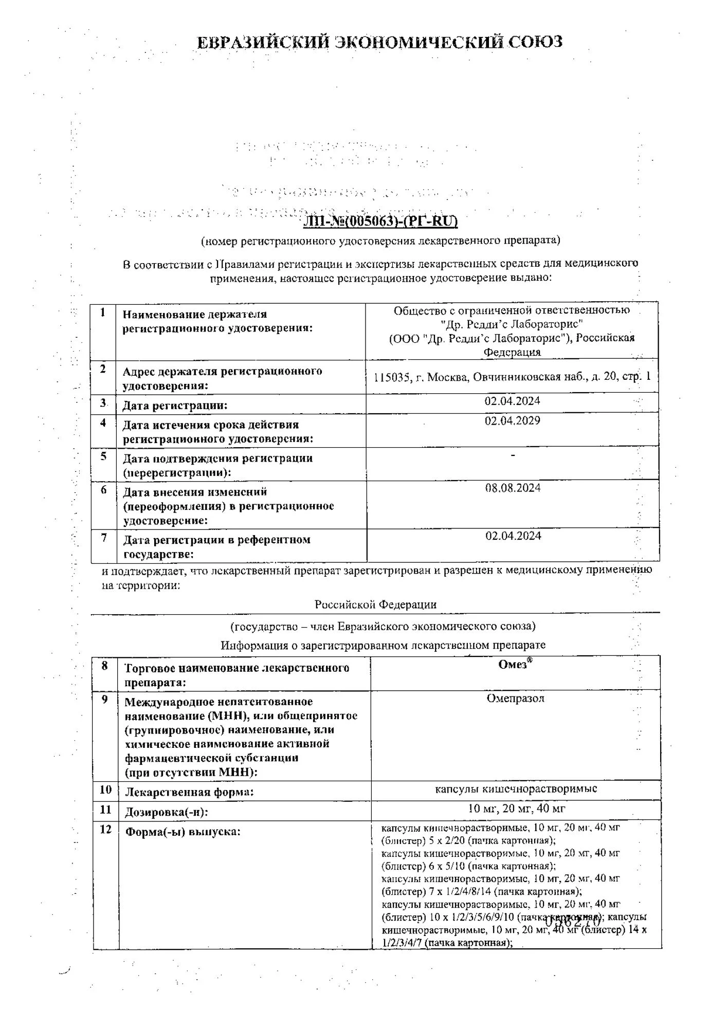 | омепразол | 20 мг |