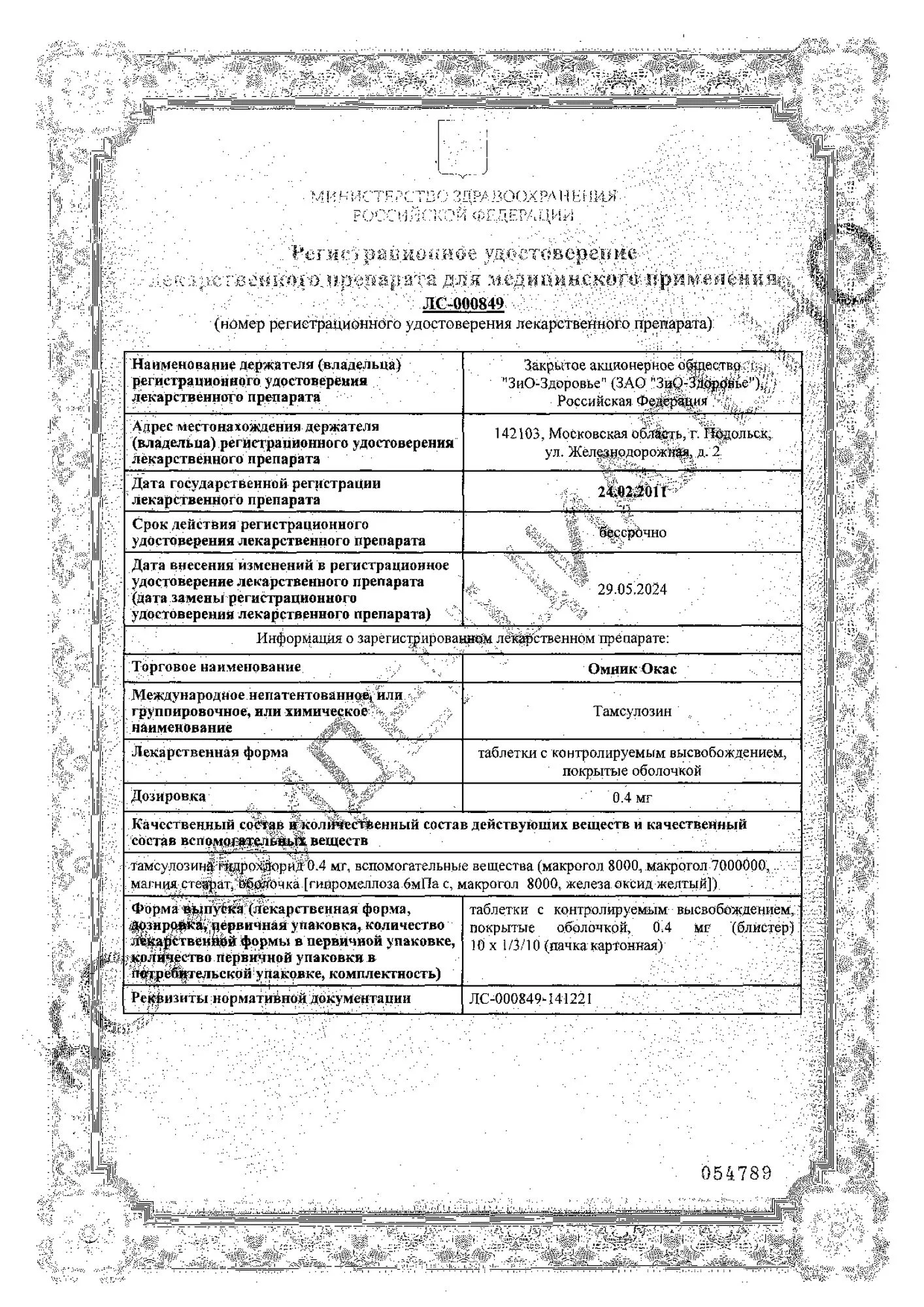 Перед применением Омник Окас, таблетки по с контролир высвоб 0,4мг №30 обязательно проконсультируйтесь с Вашим лечащим врачом.