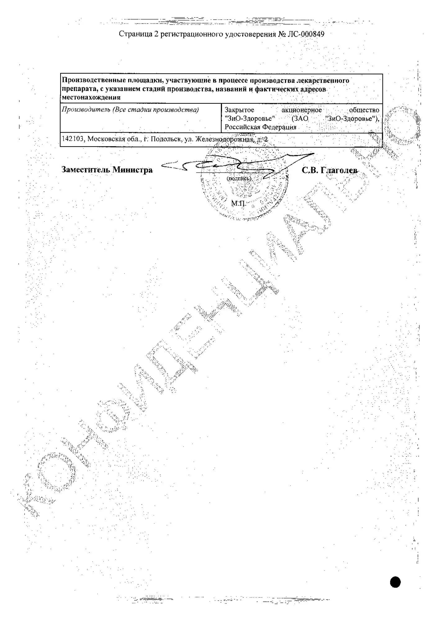 Состав оболочки: Opadry желтый 03F22733 (гипромеллоза, макрогол 8000, краситель железа оксид желтый), вода очищенная.