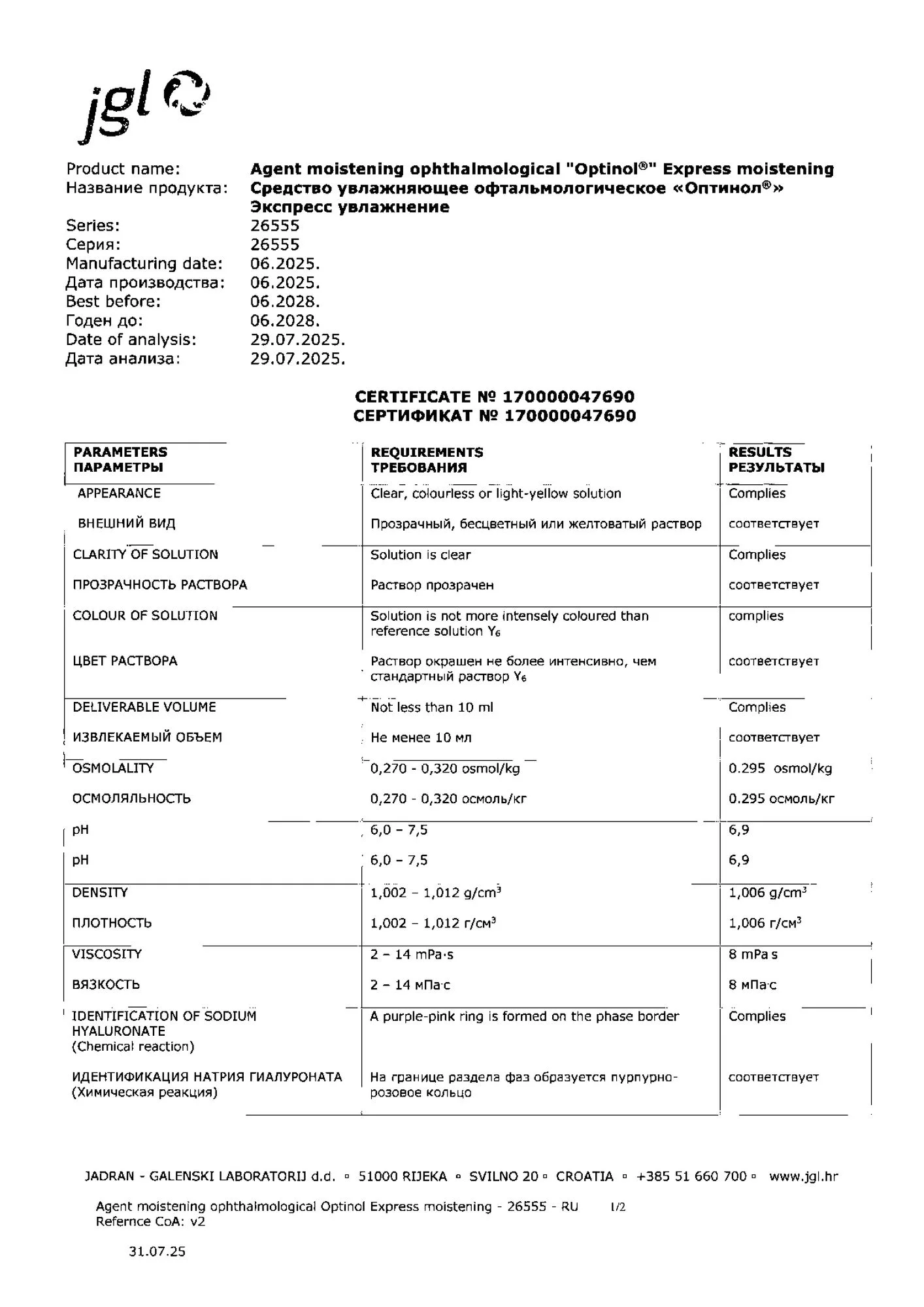 Предназначено для интенсивного и длительного увлажнения глаз и показано к применению: — при синдроме «сухого глаза» (с симптомами дискомфорта, сухости, чувства инородного тела – «песка в глазах», жжения, раздражения); — при ношении всех типов контактных линз для устранения дискомфорта; — после офтальмологических хирургических операций, а также при повреждениях и травмах роговицы