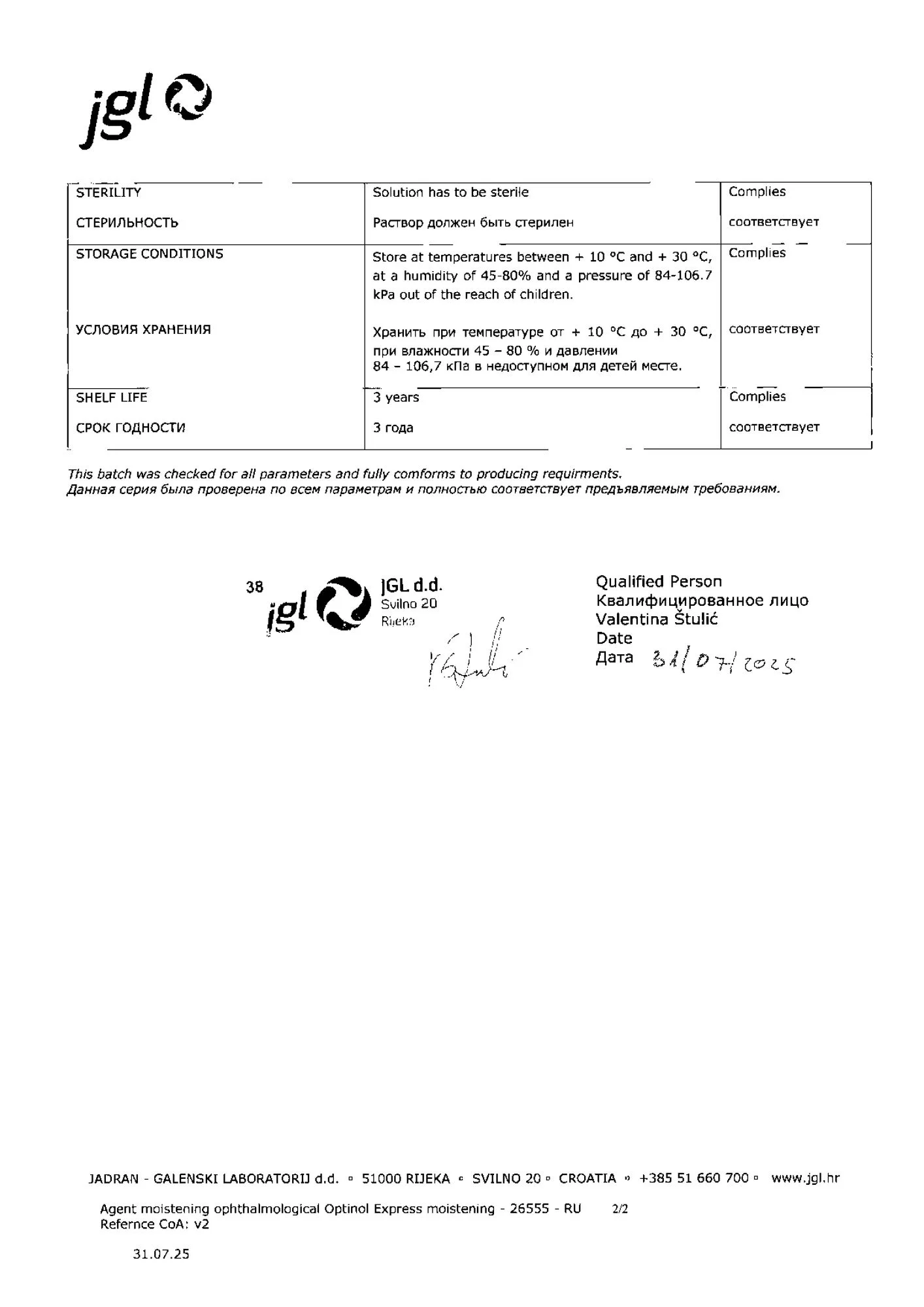 Условия и сроки хранения