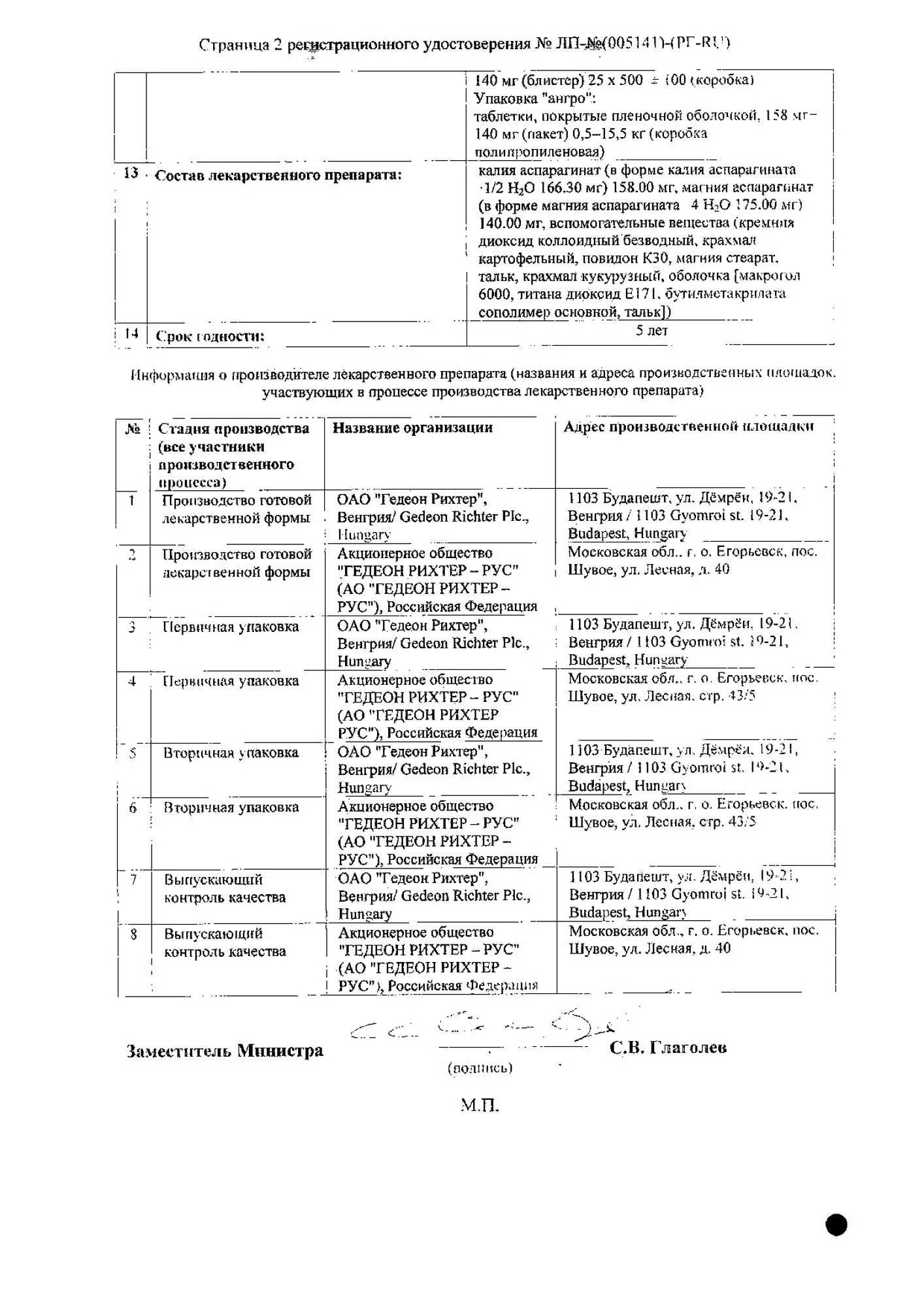 | калия аспарагината (в форме гемигидрата) | 45.2 мг | 452 мг, |