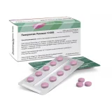 Действующее вещество: Панкреатин1, соответствующий ферментативной активности: липазы – не менее 10000 ЕД, амилазы – не менее 7500 ЕД, протеазы – не менее 375 ЕД Вспомогательные вещества: целлюлоза микрокристаллическая 102 – 52,000 мг, кросповидон – 18,000 мг, магния стеарат – 1,867 мг, кремния диоксид коллоидный (аэросил) – 1,533 мг, лактозы моногидрат – до получения таблетки без оболочки массой 300,000 мг Состав оболочки: метакриловой кислоты и этилакрилата сополимер (1:1) – 12,200 мг, тальк – 6,780 мг, титана диоксид – 5,050 мг, гипромеллоза – 4,800 мг, триэтилцитрат – 3,900 мг, полисорбат 80 (твин 80) – 0,690 мг, кармеллоза натрия (натрия карбоксиметилцеллюлоза) – 0,440 мг, макрогол 6000 (полиэтиленгликоль 6000) – 0,210 мг, симетикона эмульсия 30 % (сухая масса)2 – 0,163 мг, краситель азорубин (кармуазин) – 0,022 мг 1 Количество может варьироваться в зависимости от липолитической активности исходной субстанции. Допустимо использование субстанции с липолитической активностью от 80 ЕД/мг до 44 ЕД/мг. 2 В состав эмульсии входят симетикон (30 %), эмульгаторы (5-10 %), консерванты (0,5-1,0 %), вода очищенная (60-65 %).