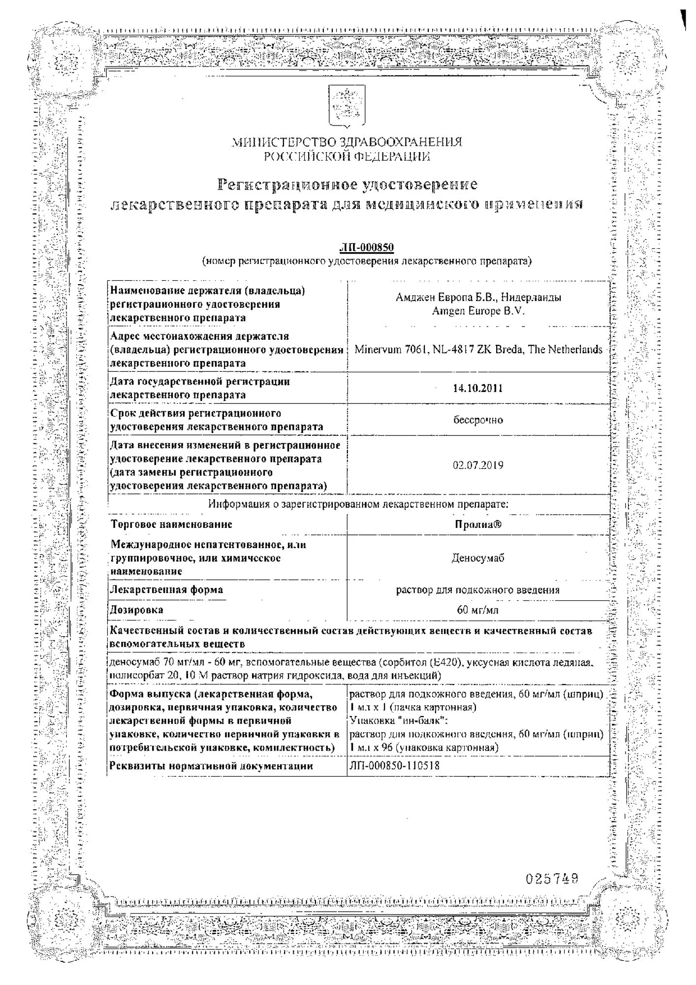Производитель: Амджен Европа Б.В./Добролек ООО/Амджен Мэньюфэкчуринг Лимите