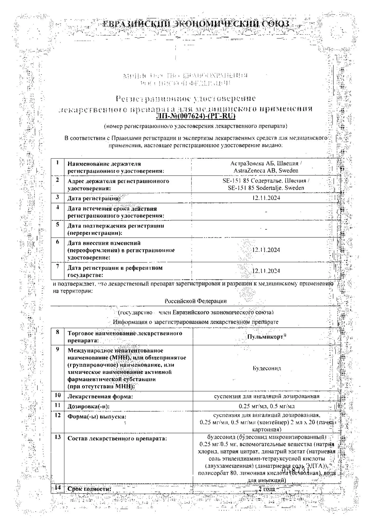 Пульмикорт, суспензия для инг доз 0,25мг/мл конт 2мл №20