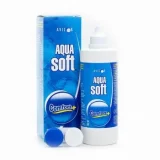 Средства по уходу за контактными линзами Avizor Aquasoft для всех видов контактных линз во флаконах с контейнером для хранения линз.