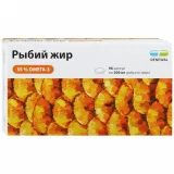 Рыбий жир – 500 мг, содержащий 150 мг омега-3, в том числе полиненасыщенные жирные эйкозапентаеновую и докозагексаеновую кислоты.