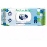 Влажные салфетки Ultra Fresh Antibacterial с клапаном. Благодаря особому сочетанию очищающих и антибактериальных компонентов удаляют с кожи различные загрязнения, устраняют бактерии, а сбалансированная формула обеспечивает увлажнение и ощущение свежести.