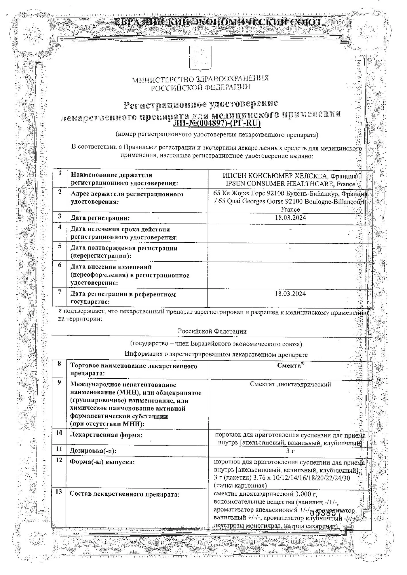 Действующее вещество: Смектит диоктаэдрический