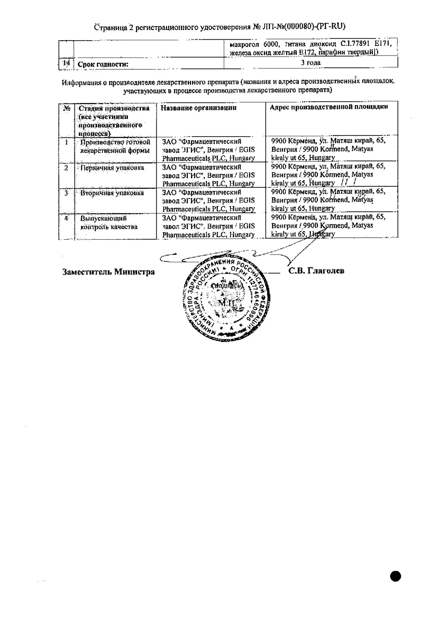 Производитель: ЭГИС Фармацевтический завод ЗАО