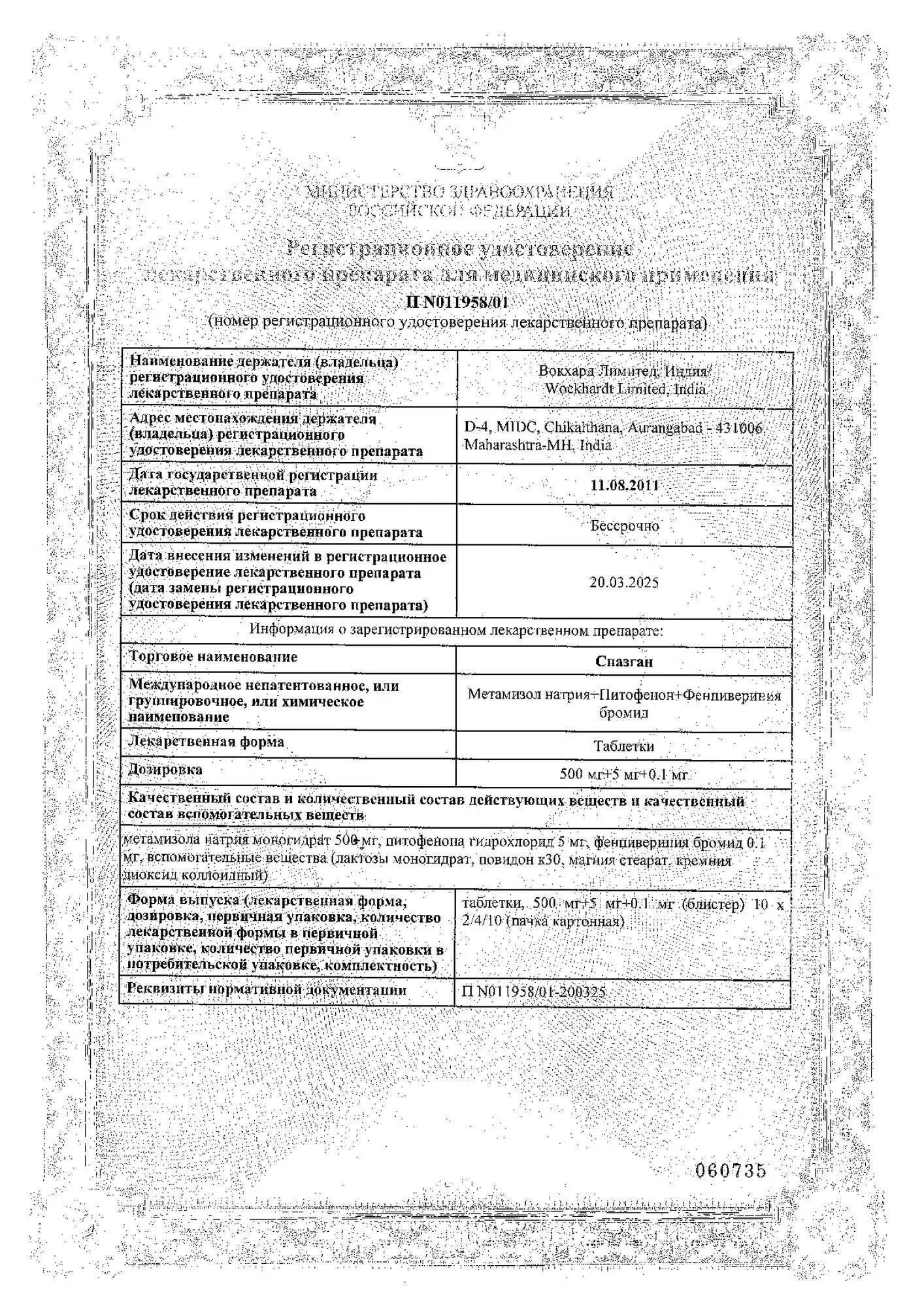 активные вещества: метамизол натрия моногидрат - 500,0 мг, питофенона гидрохлорид -5,0 мг, фенпивериния бромид - 0,1 мг;