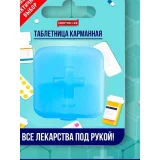 Таблетница Карманная** Таблетница пластмассовая из безопасного легко моющегося пластика для хранения лекарственных средств или витаминов в заводской упаковке. Таблетница содержит 4 отделения в соответствии с суточным режимом приема: утро, день, вечер, ночь. Таблетница рассчитана на 1 день; Изготовлена из безопасного легко моющегося пластика; Прочный и надёжный корпус; Плотно защелкивается и легко открывается; Съемный разделитель: Утро/День/Вечер/Ночь; Удобная для ежедневного использования; Подходит для сложных схем приема лекарств; Компактная можно брать с собой; Размеры: 6.5 6.5 2 см Инструкция по применению: перед первым использованием промойте теплой водой с мылом и высушите. Разложите лекарственные средства или витамины по отделениям, закройте крышку таблетницы. Условия хранения: хранить при комнатной температуре в сухом и защищенном от прямых солнечных лучей месте. Срок годности не ограничен. Не подлежит обязательной сертификации и декларированию в РФ.
