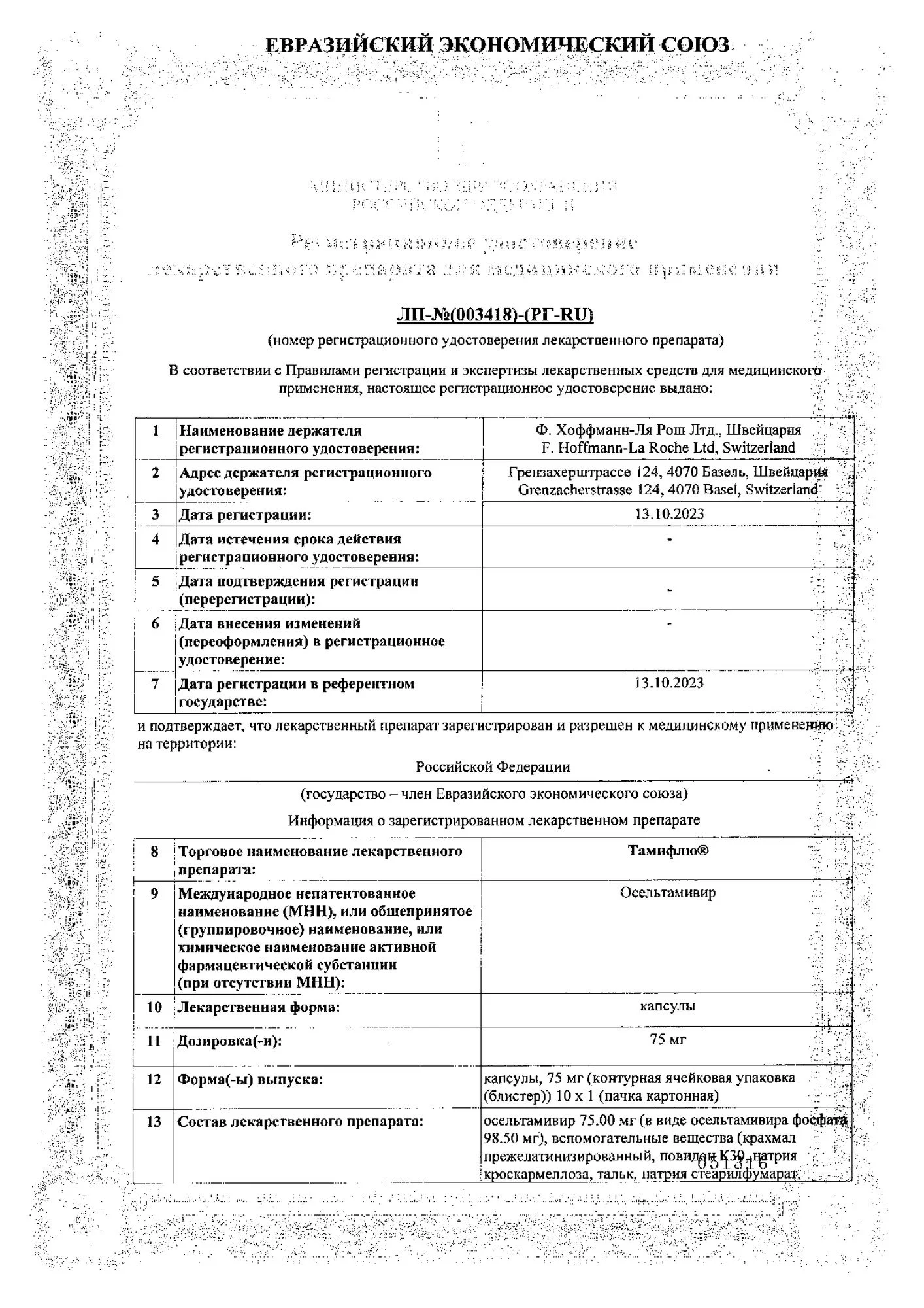 Прочее: осельтамивир и активный метаболит проникают в молоко лактирующих крыс. Согласно ограниченным данным осельтамивир и его активный метаболит проникают в грудное молоко человека. По результатам экстраполяции данных, полученных в исследованиях у животных, их количество в грудном молоке может составлять 0.01 мг/сут и 0.3 мг/сут, соответственно.
