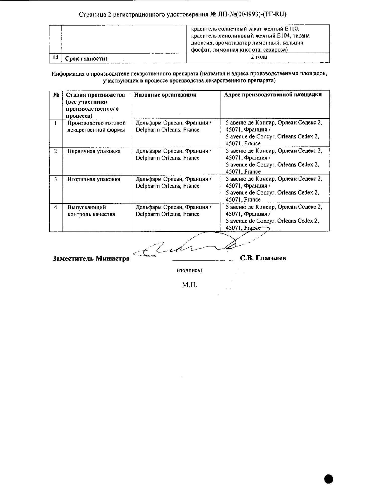 Порошок для приготовления раствора для приема внутрь (лимонный). Для завода Фамар Орлеан, Франция: По 22,1 г порошка в 4-хслойный пакетик (полиэтилен/полиэтилен низкой плотности/алюминиевая фольга/полиэтилен низкой плотности) или 5-тислойный пакетик (бумага/полиэтилен/полиэтилен низкой плотности/алюминиевая фольга/полиэтилен низкой плотности). Пакетики в количестве 14 штук в картонной пачке, размещенных индивидуально или попарно скрепленных через перфорацию, вместе с инструкцией по применению. На вторичной упаковке допускается наличие контроля первого вскрытия. Для завода ГСК Консьюмер Хелс, Инк., США: По 22,1 г порошка в 6-тислойный пакетик (бумага/полиэтилен низкой плотности/полиэтилен/полиэтилен низкой плотности/алюминиевая фольга/полиэтилен низкой плотности). Пакетики в количестве 14 штук в картонной пачке, размещенных индивидуально или попарно скрепленных через перфорацию, вместе с инструкцией по применению. На вторичной упаковке допускается наличие контроля первого вскрытия.