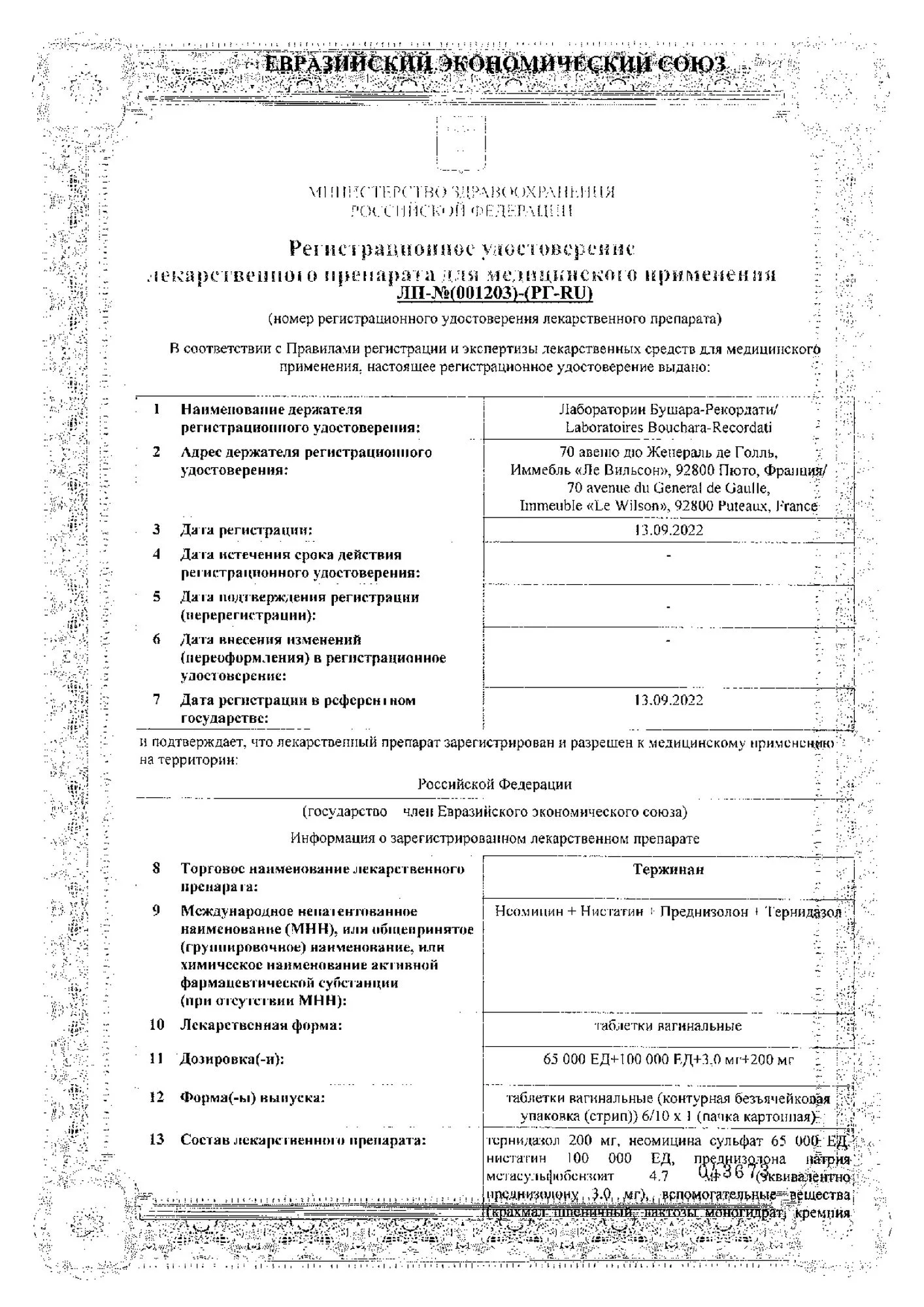 Действующее вещество: Неомицин+Нистатин+Преднизолон+Тернидазол