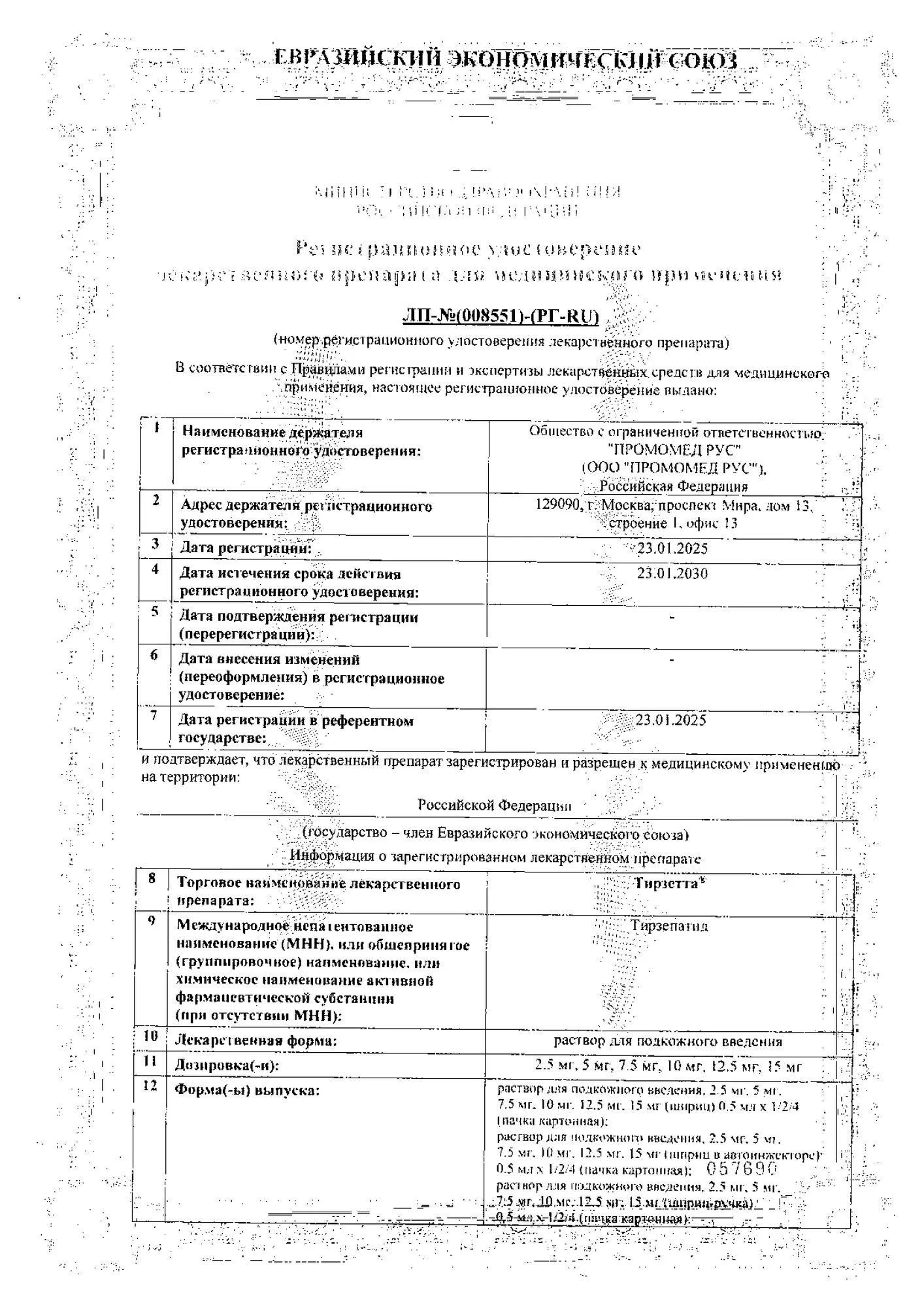 * Препарат Тирзетта выпускается в виде шприца, автоинжектора или в виде шприц-ручки. Препарат Тирзетта содержит одну из доз тирзепатида: 2,5 мг, 5 мг, 7,5 мг, 10 мг, 12,5 мг, 15 мг, что соответствует режиму дозирования один раз в неделю.