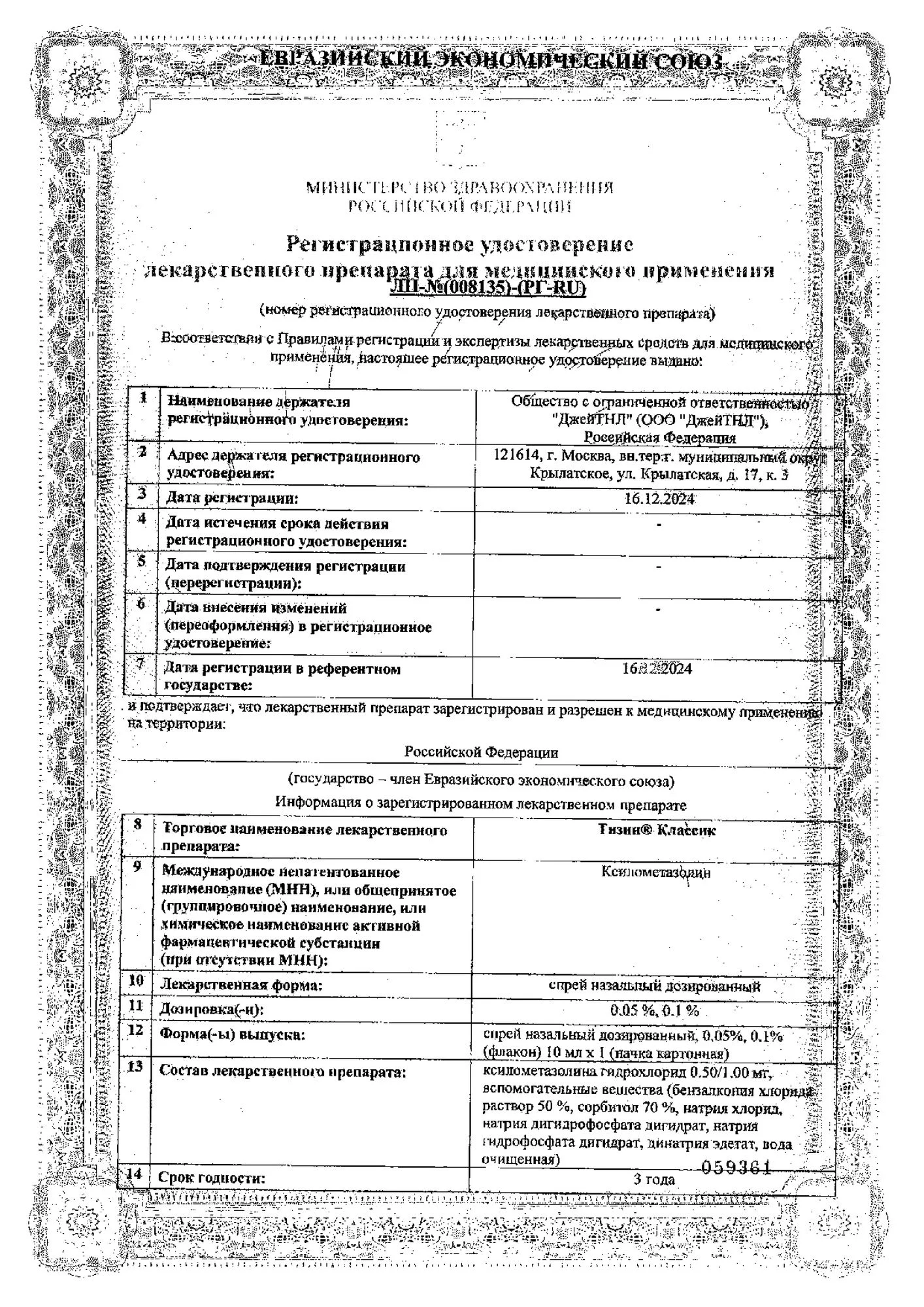 Тизин® Классик может вызвать преходящее легкое раздражение носа (жжение),