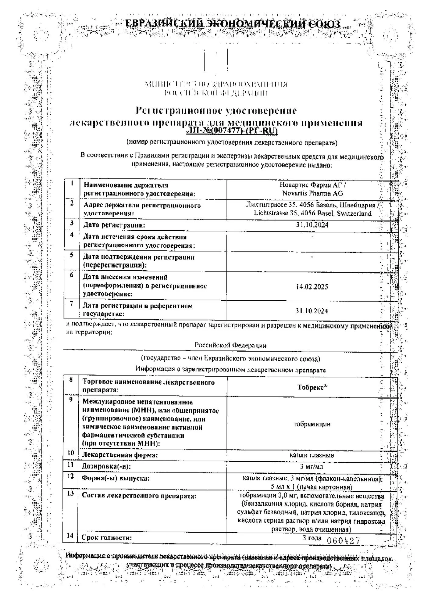 Перед применением Тобрекс, капли глазн 0,3% 5мл обязательно проконсультируйтесь с Вашим лечащим врачом.