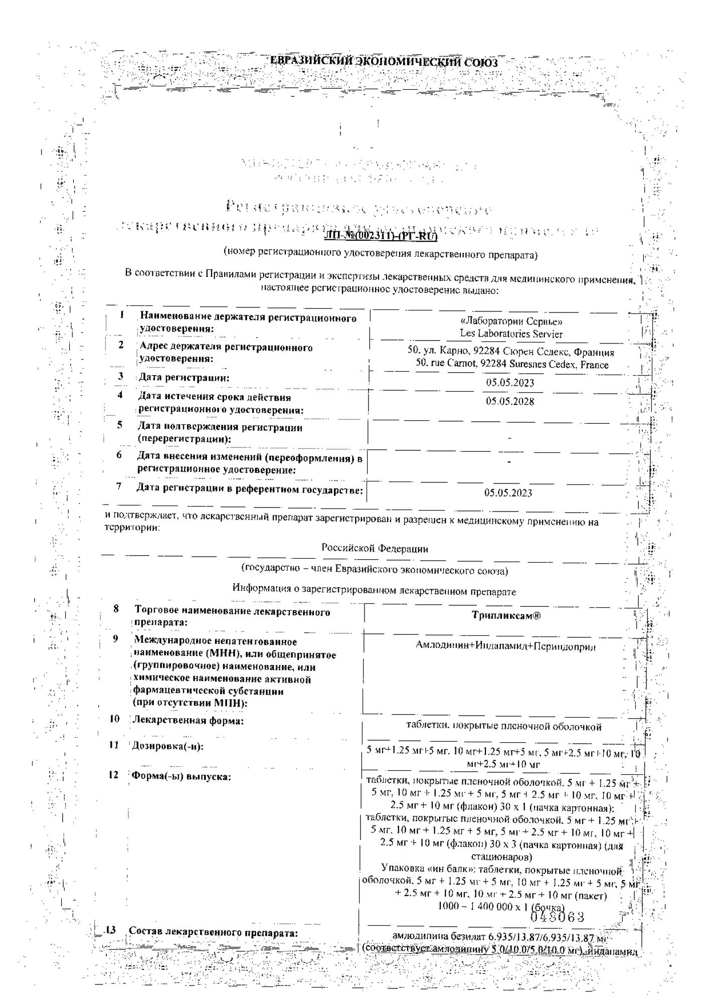 Действующее вещество: Амлодипин+Индапамид+Периндоприла аргинин