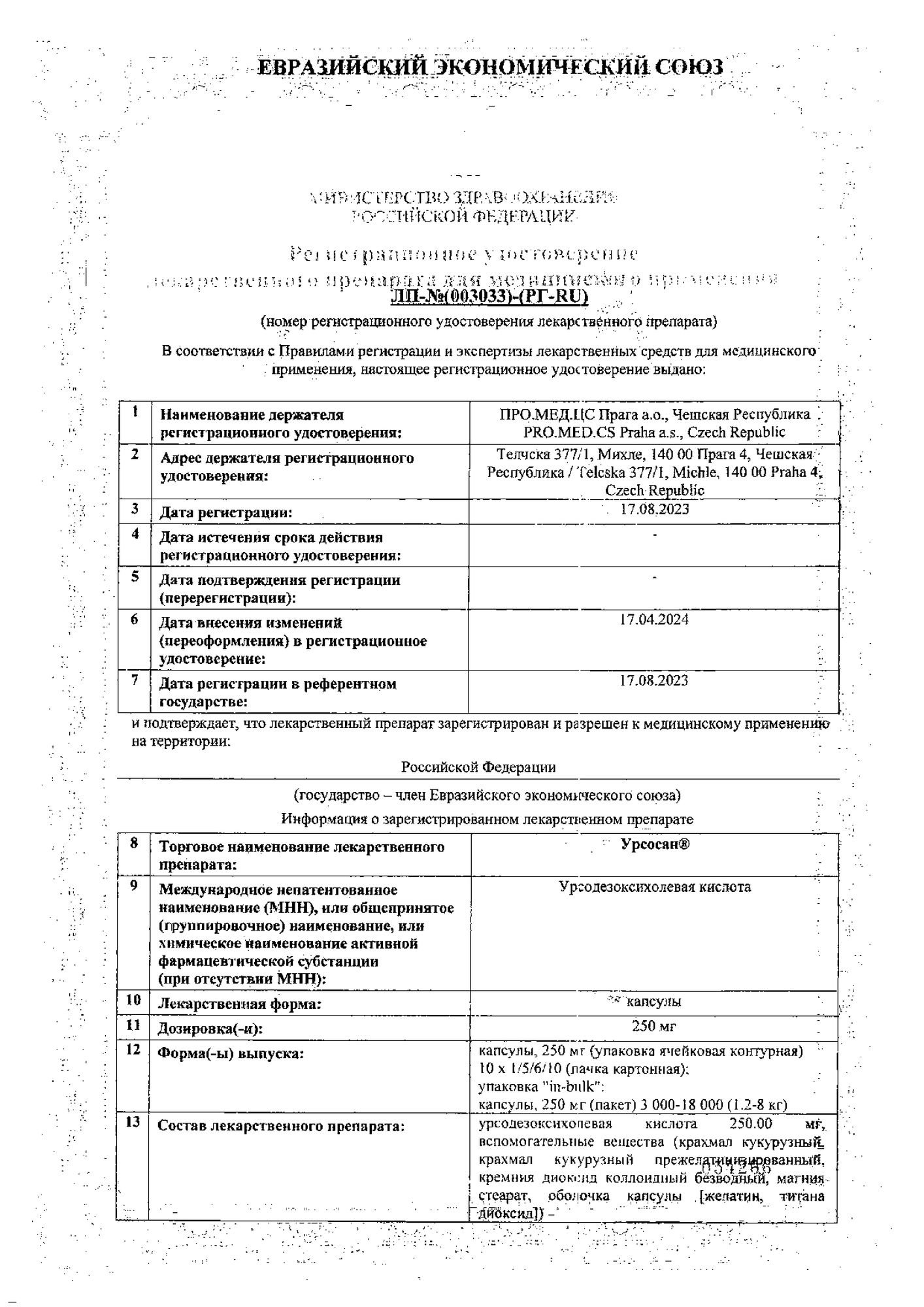 Действующее вещество: Урсодезоксихолевая кислота