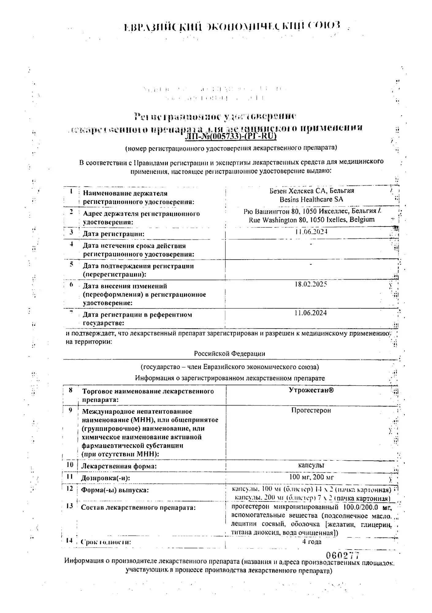 При применении препарата Утрожестан® с эстрогенсодержащими препаратами необходимо обращаться к инструкциям по их применению относительно рисков венозной тромбоэмболии.
