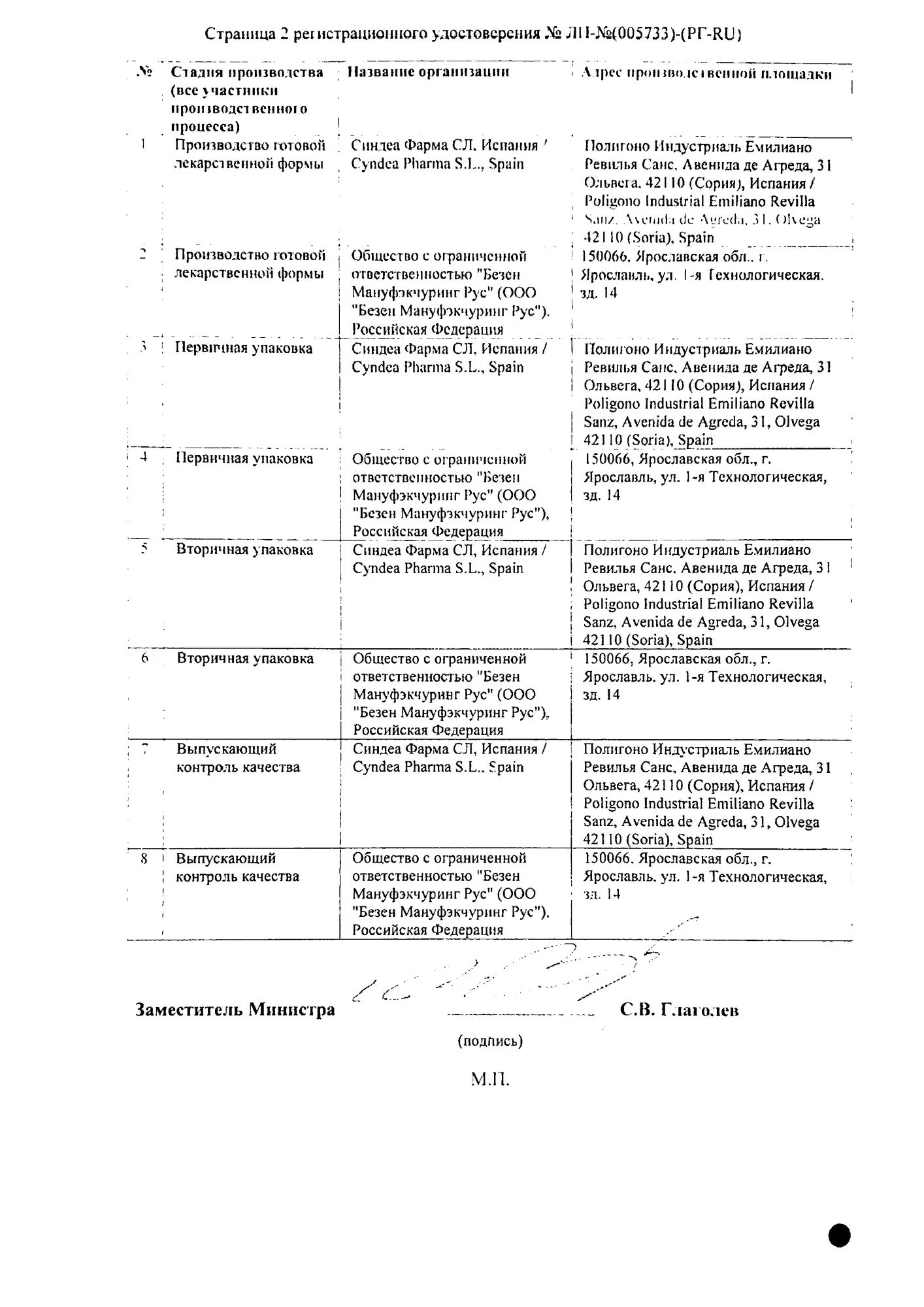 Производитель: Безен Мануфэкчуринг Рус ООО/Синдеа Фарма С.Л.