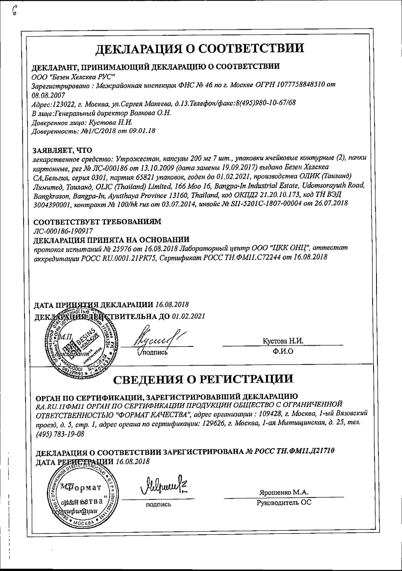 Действующим веществом препарата Утрожестан® является прогестерон, идентичный естественному гормону желтого тела яичника. Связываясь с рецепторами на поверхности клеток органов-мишеней, проникает в ядро, где активируя ДНК, стимулирует синтез РНК.