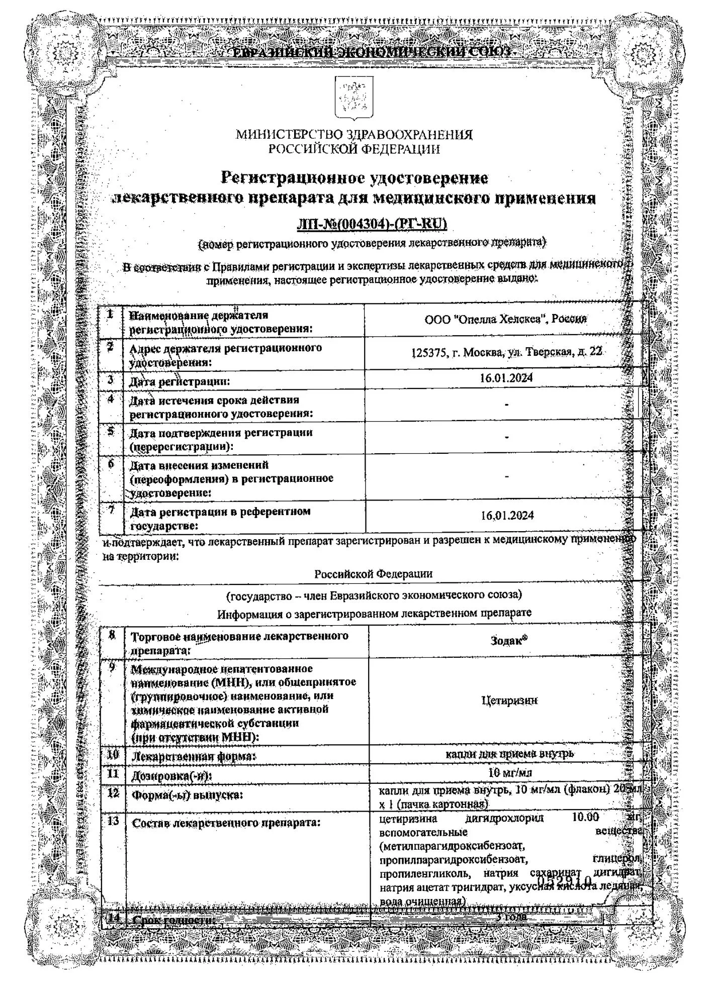 Зодак, капли для внутр примен 10мг/мл 20мл