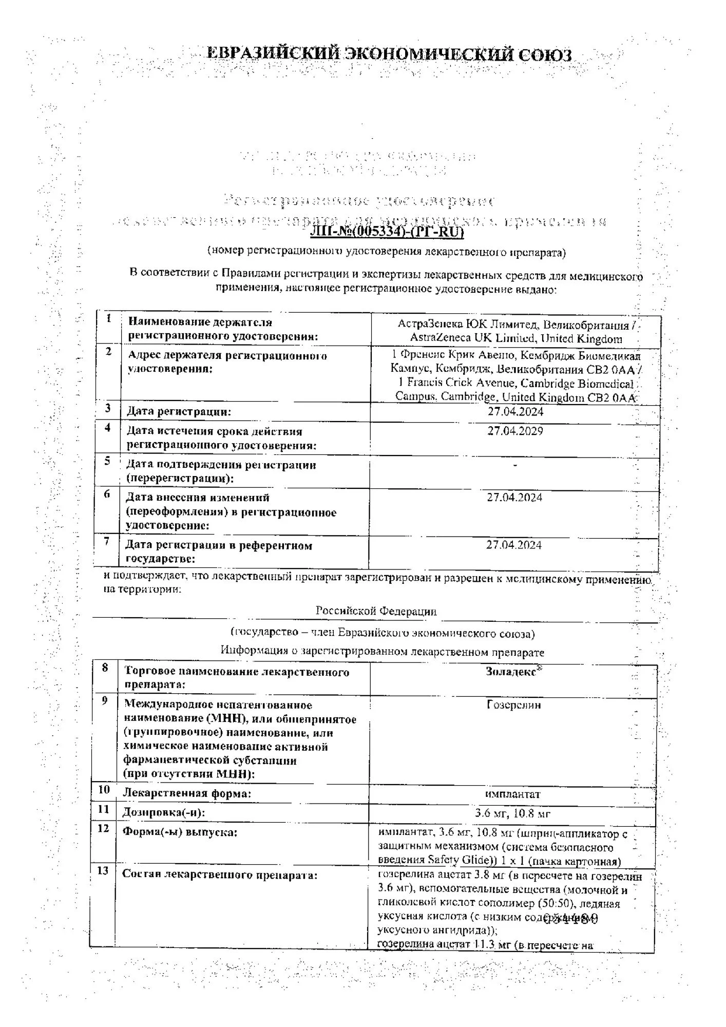гозерелин (в форме ацетата) 10.8 мг